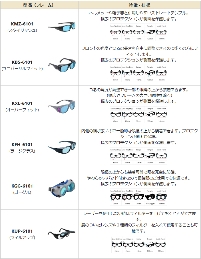 ※フィルターが全て№6101の製品ページとなります。フレームをお客様のご用途に応じてご選択ください。