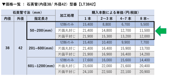 ・石英管のサイズ(径)違いの製品は対象となりません。